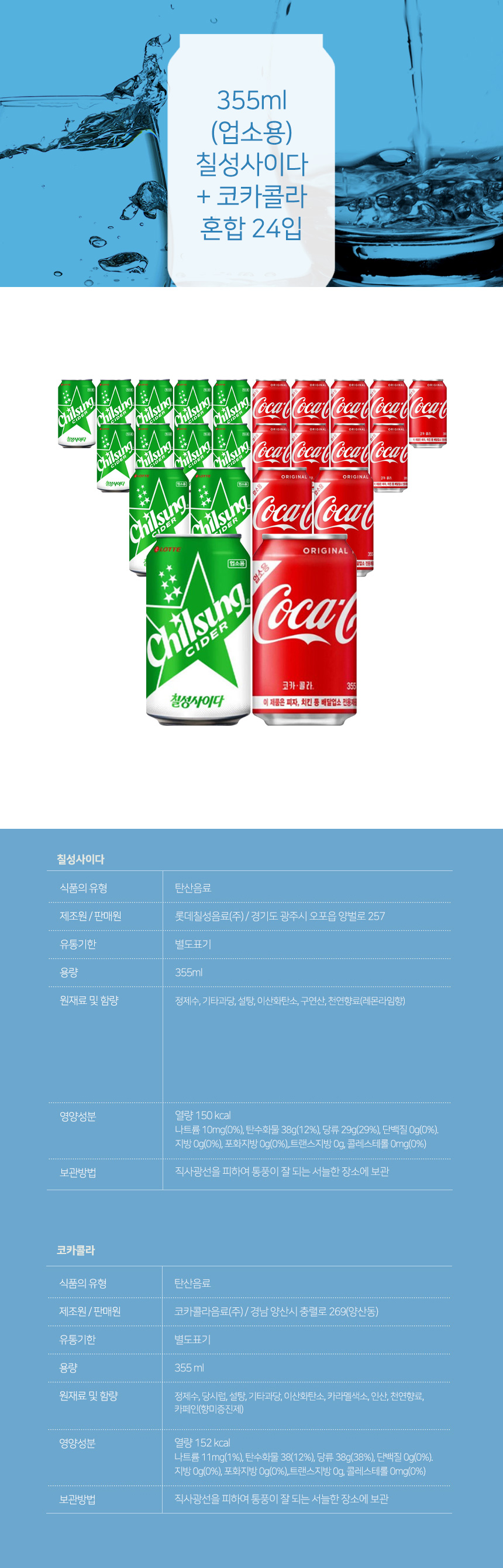 355ml (업소용)칠성사이다+코카콜라 혼합 24입