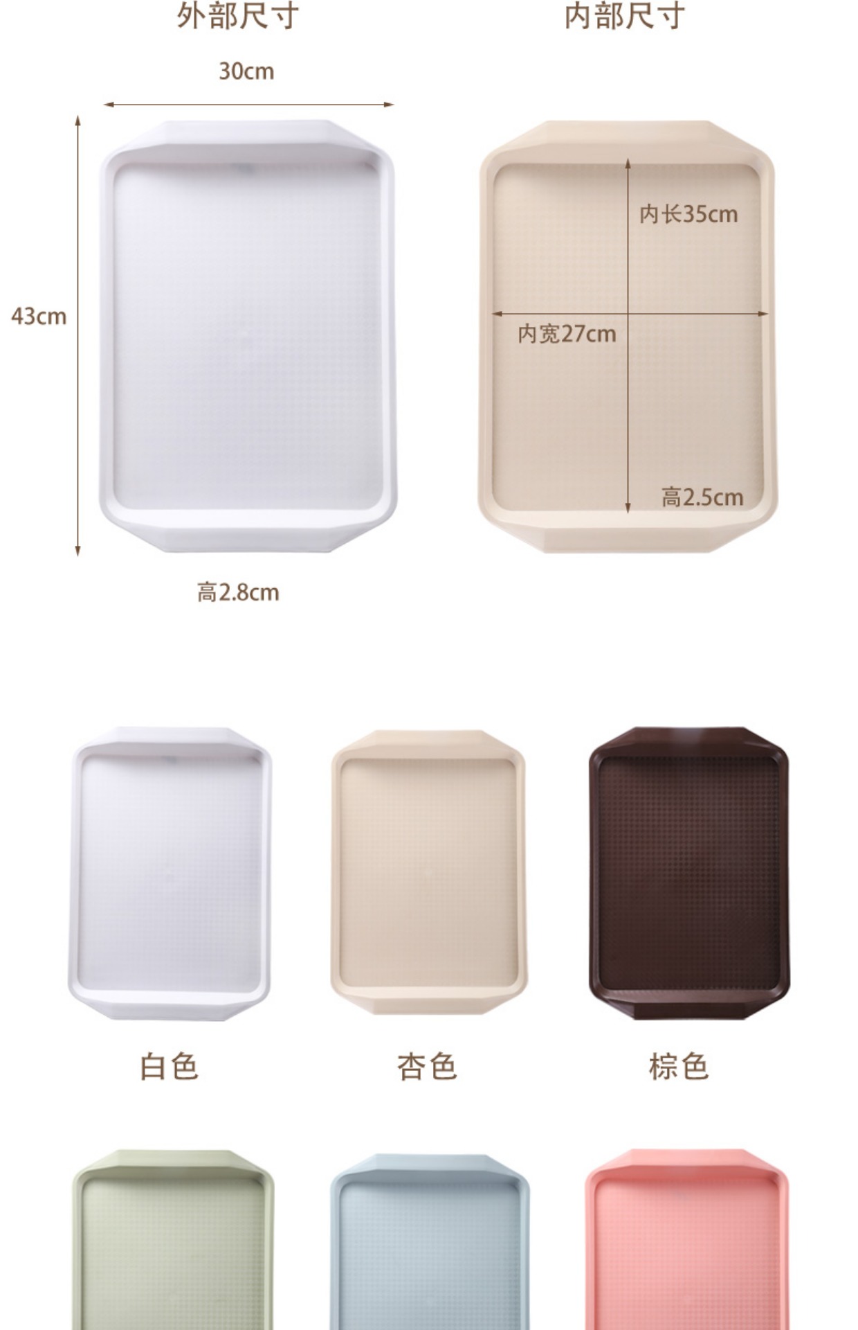 두꺼운 상업용 플라스틱 쟁반 직사각형 패스트푸드 쟁반 호텔 KFC 유치원 식당 음식 접시