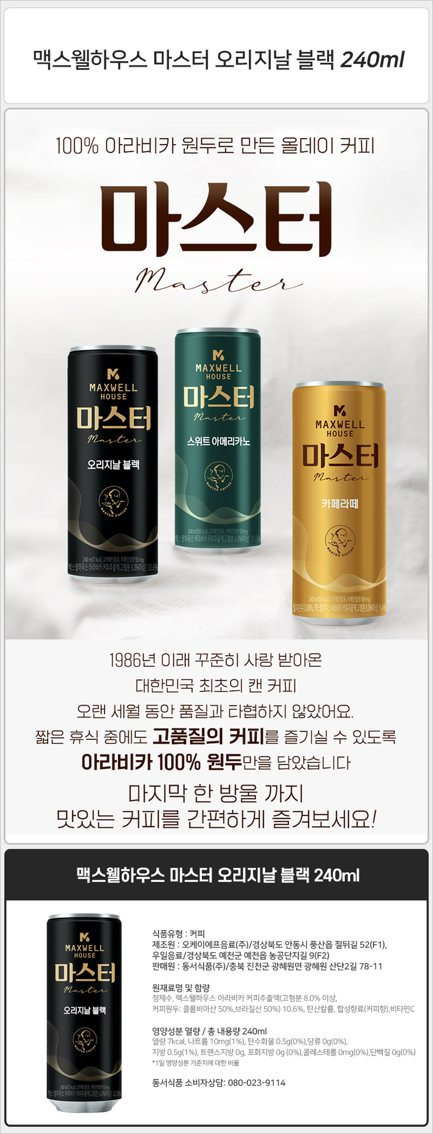상품명맥스웰 마스터 오리지날 블랙 240mlx30캔 2박스 / 단일