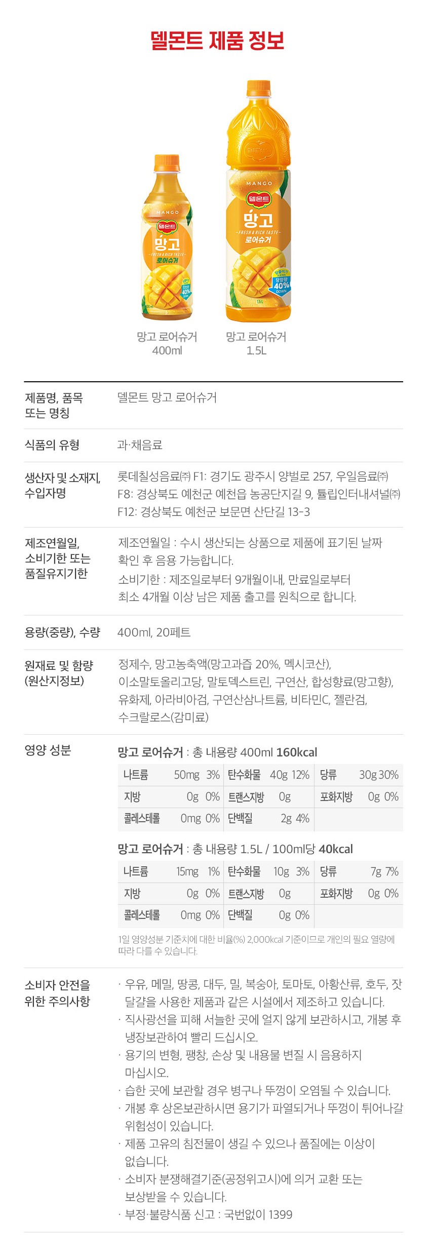 델몬트 망고주스 로우슈거 1.5L 12펫