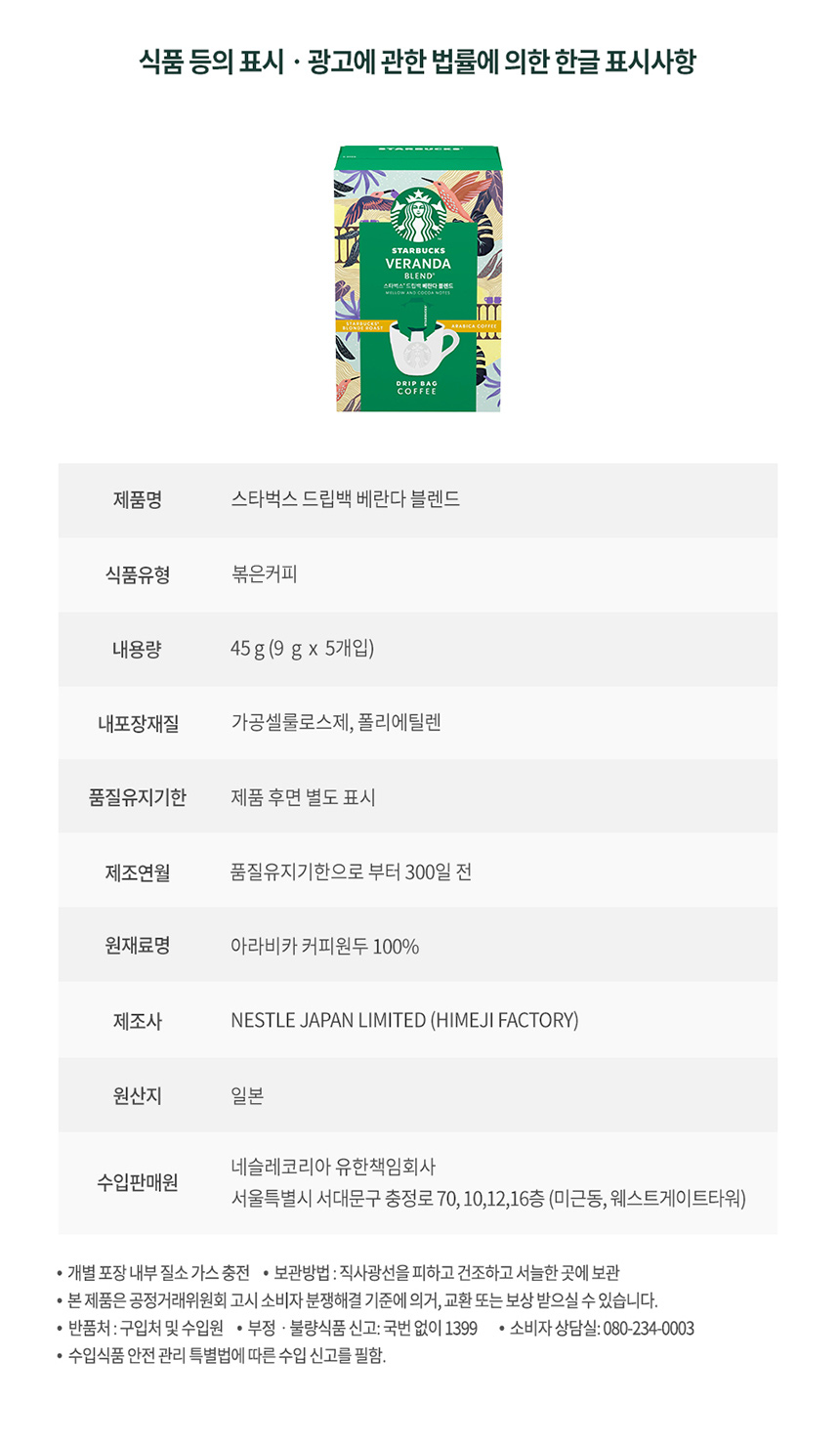 스타벅스 드립백 베란다 블렌드 (5개입) / NEW