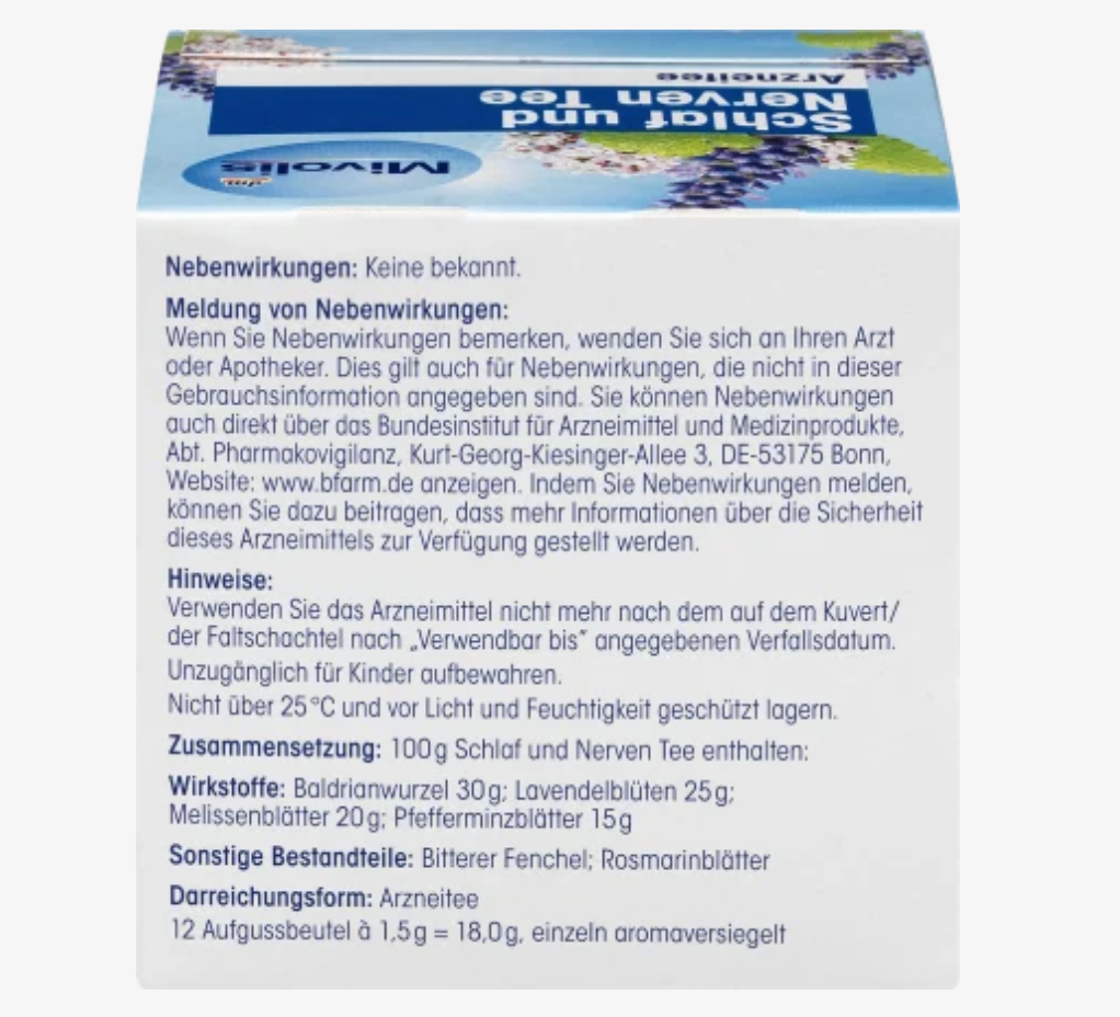 미볼리스 독일 수면 신경차 Schlaf und Nerven Tee 12티백 x 3박스