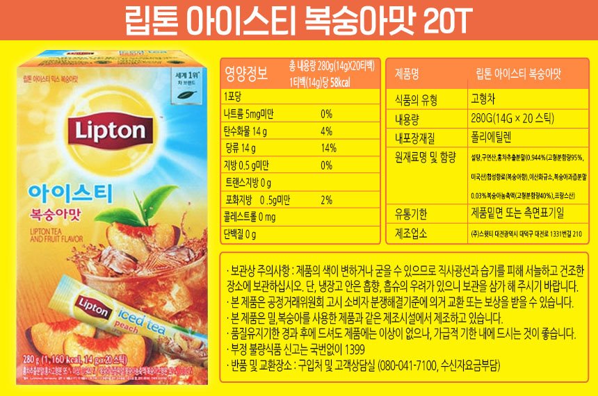 립톤 아이스티 믹스 홍차 20T (복숭아맛)