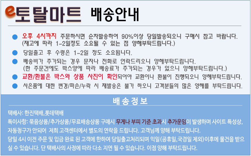 (최소 9000 원의 도서산간 지역 추가 배송비가 부과될 수 있습니다.)
