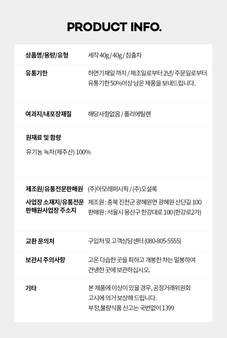 (롯데백화점)(오설록) 세작 40 g(잎차)