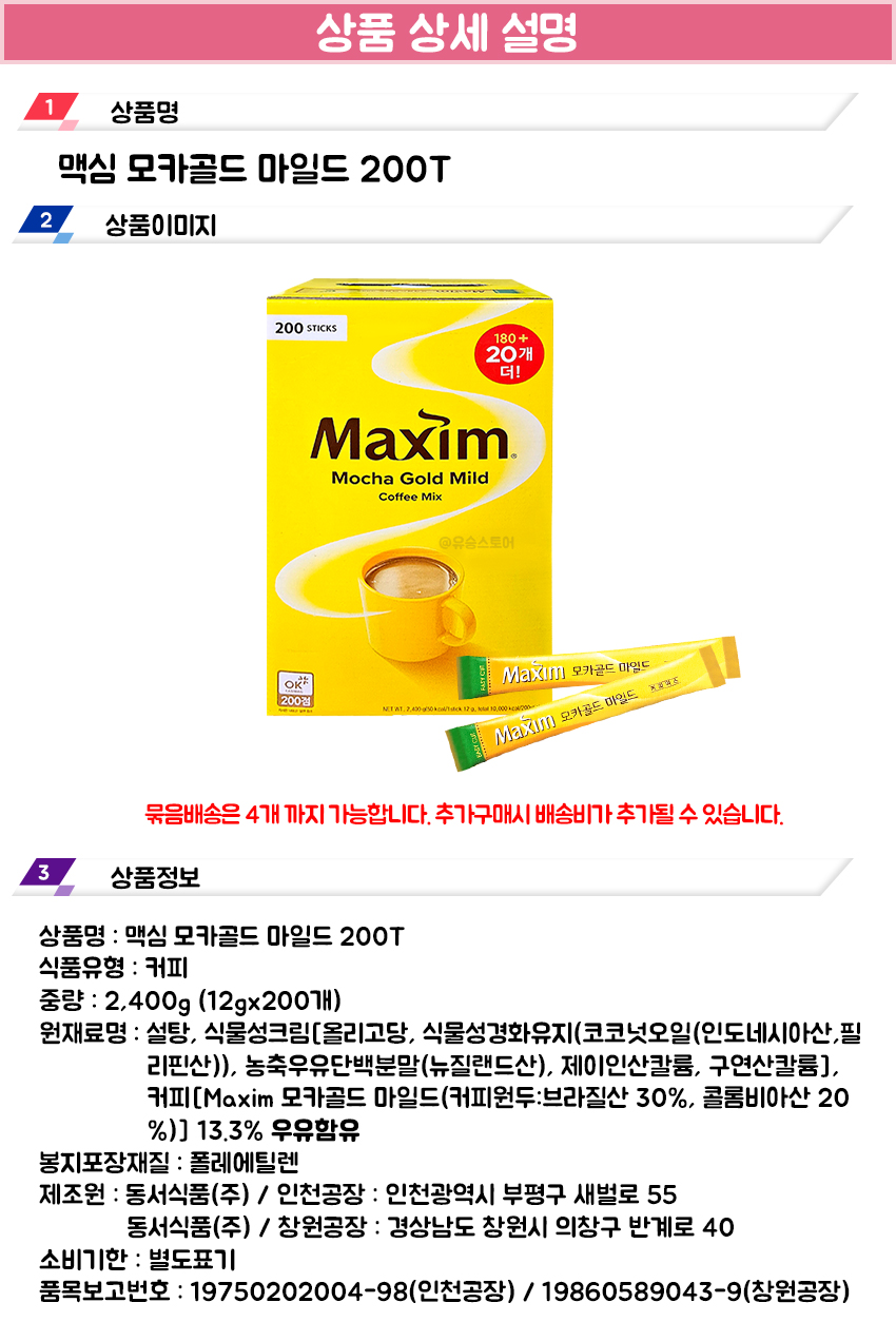 맥심 모카골드 마일드 200T 1개