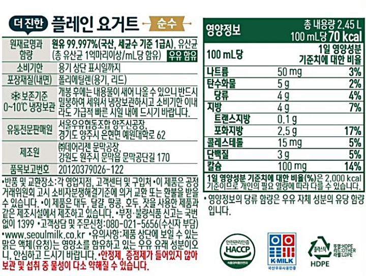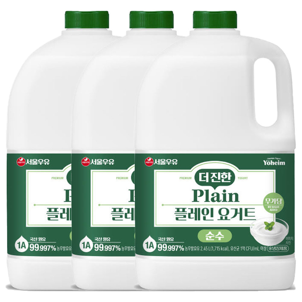서울우유 플레인 요거트 2.45L 3개 더진한 순수무가당 당무첨가 대용량