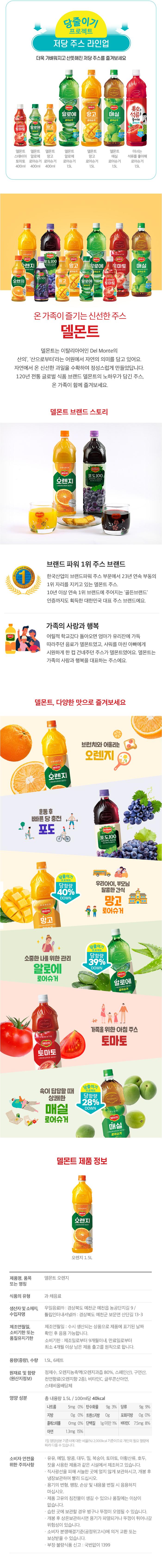 상품명델몬트 오렌지 1.5L 낱개 / 1페트 / 델몬트 오렌지 1.5L 낱개 / 1페트
