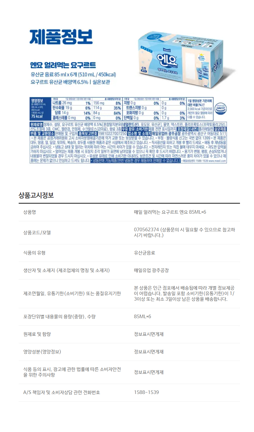 매일유업 엔요 얼려먹는 요구르트 85ml x 24개