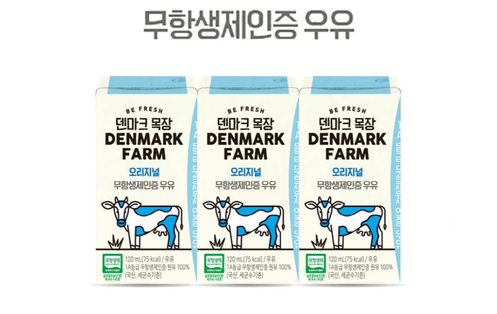 덴마크 무항생제 우유120ml x 64팩(2박스)