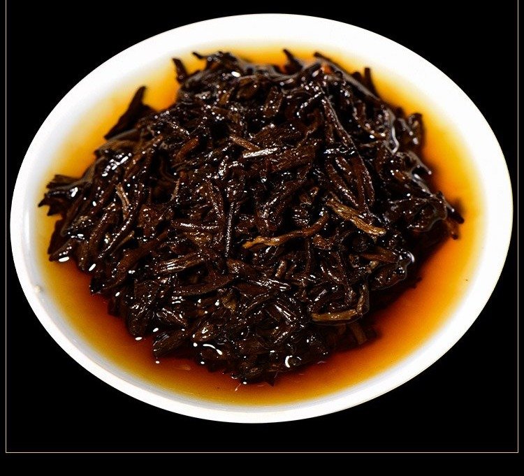 컵 바닥의 차 잎이 선명하게 펼쳐져 있고, 가지가 고르게 배열되어 있으며, 발효가 적절합니다.