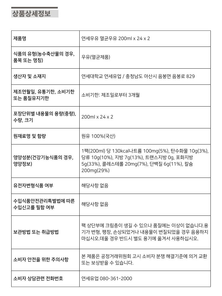 연세우유 멸균우유 200mlx48개 코스트코
