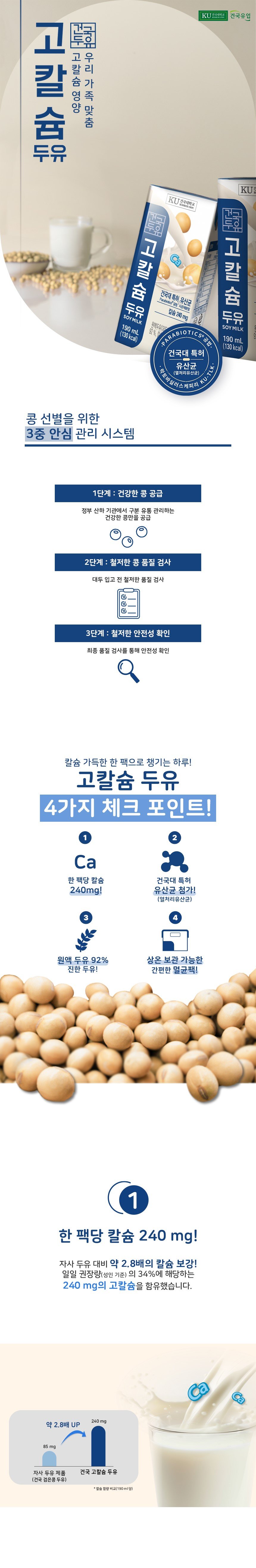 본사배송 건국우유 고칼슘 두유 190ml 24팩