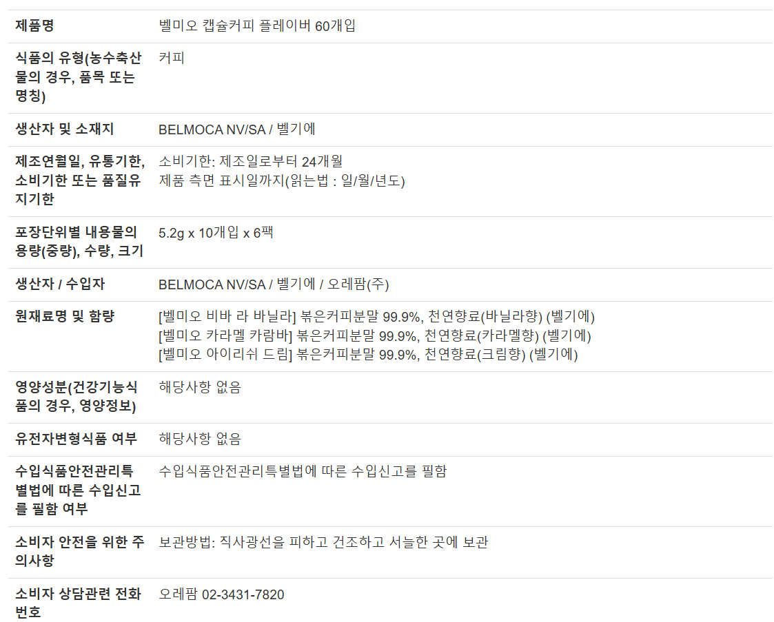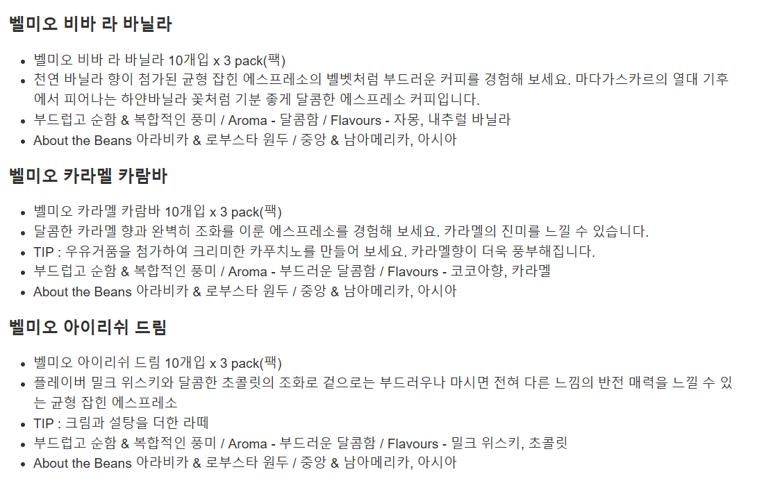 벨미오 캡슐커피 플레이버 60개입 코스트코