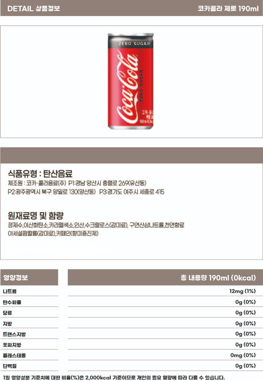코카콜라 제로 190ml 30입 소캔 미니캔