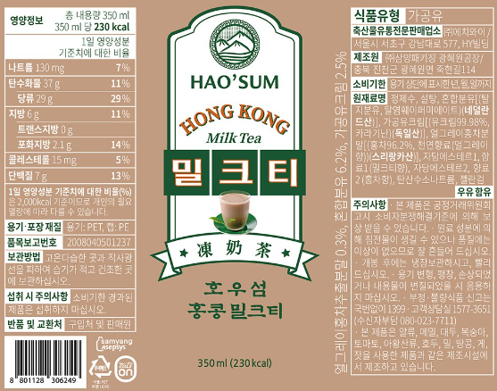 호우섬 홍콩 밀크티 350ml 6개 350ml 6개
