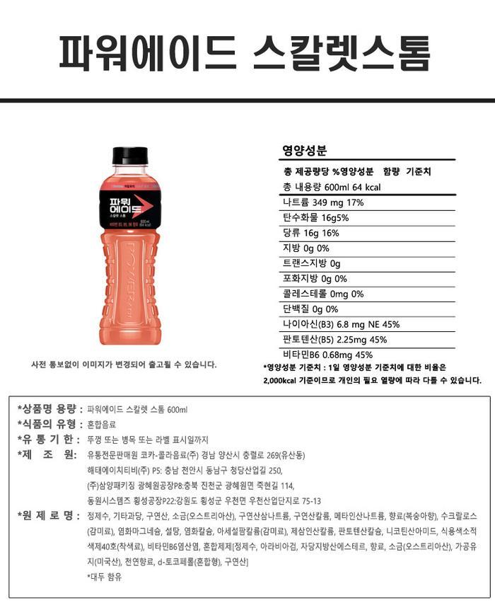 | 수입식품의 경우 “수입식품안전관리특별법에 따른 수입신고를 필함"의 문구 | 상세페이지 참조 |