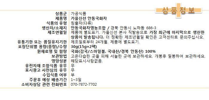 안동국화차30g(15gx2팩) 국화차 꽃잎차 감국 가을신선 국화 꽃차