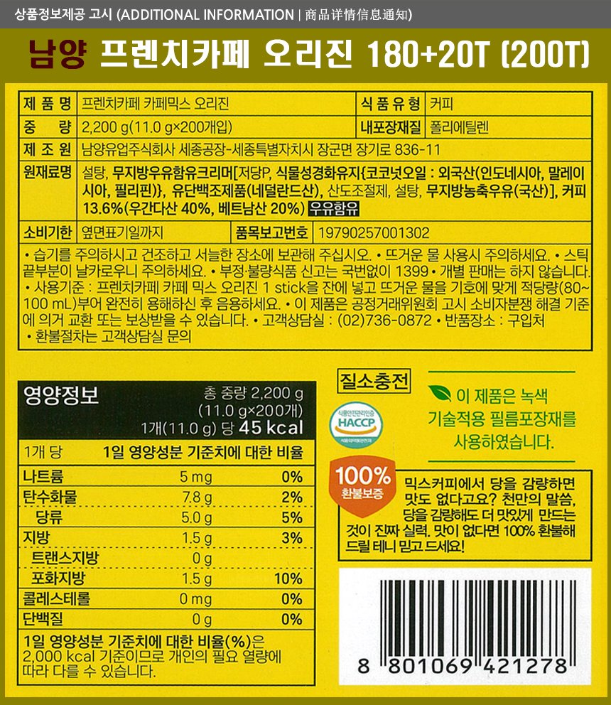 남양 프렌치카페 커피믹스 180T+20T/오리진 커피