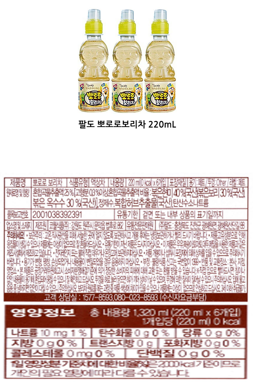 팔도 뽀로로보리차 220mL 48펫
