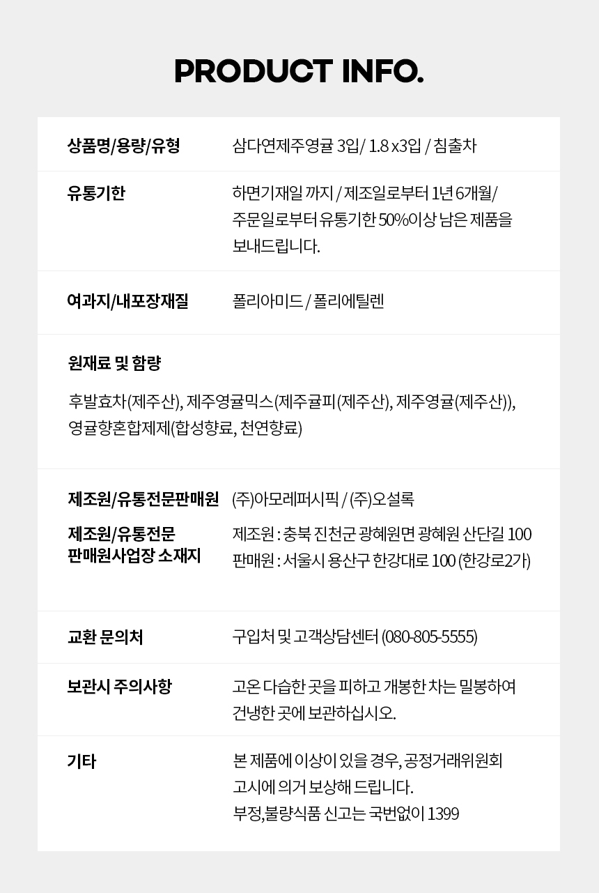 (롯데백화점)(오설록) 삼다연제주영귤 3입