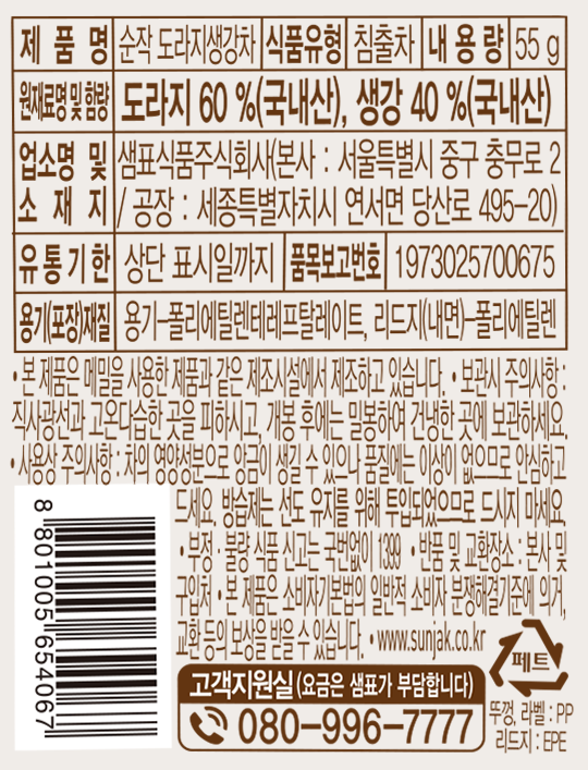 (신세계강남점)샘표 순작 도라지생강차 (원물) 55g