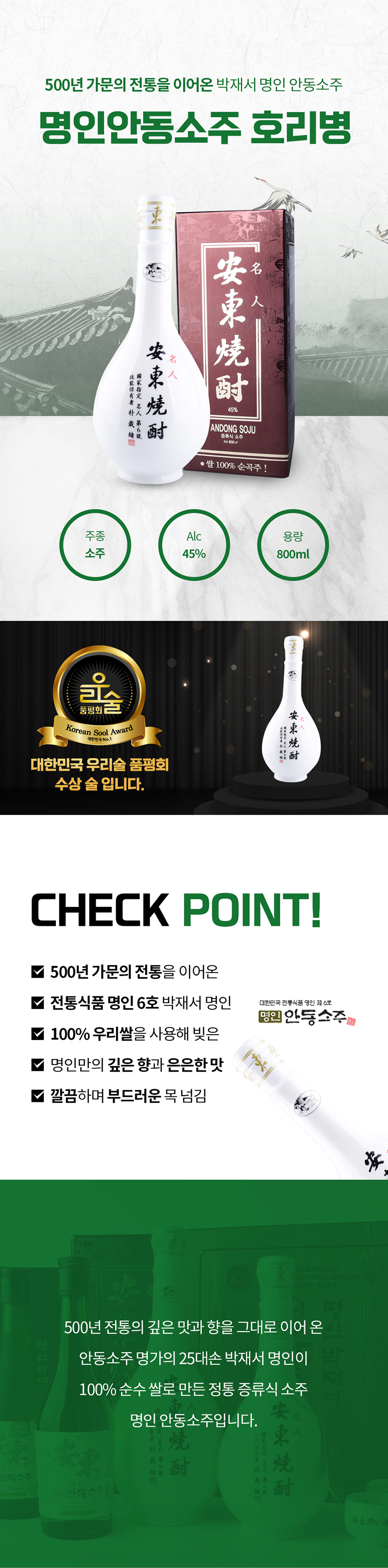 명인안동소주 호리병 45도 800ml 케이스 박재서안동소주 술 술선물