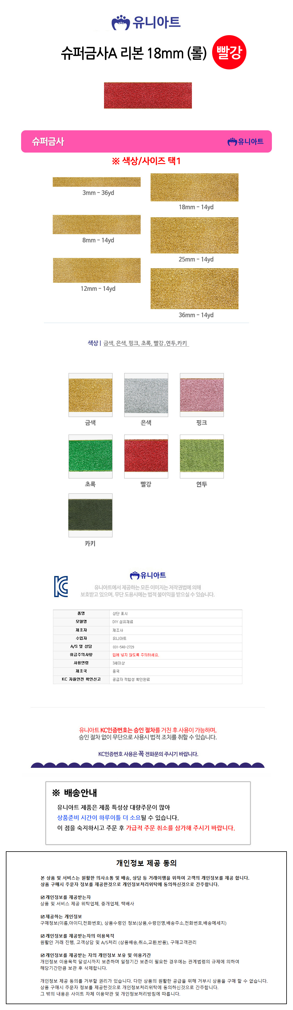 [상품명 : YTU-17035 (리본) 슈퍼금사A 리본 18mm (빨강) (롤)]