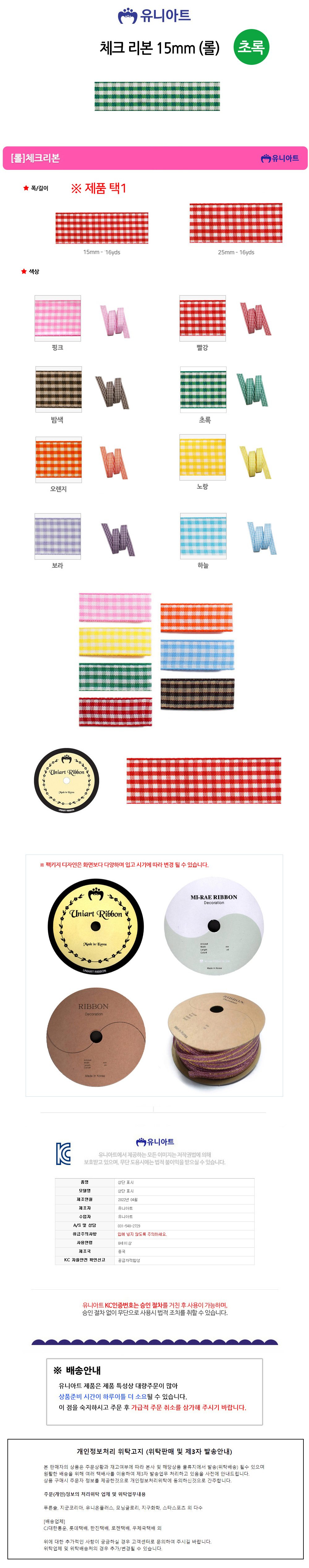 [상품명 : YTU-17163 (리본) 체크 롤 (폭 15mm) (초록)]