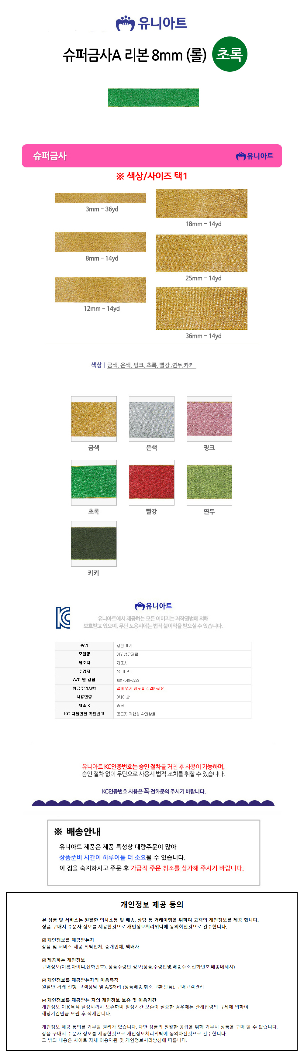 [상품명 : YTU-17020 (리본) 슈퍼금사A 리본 8mm (초록) (롤)]