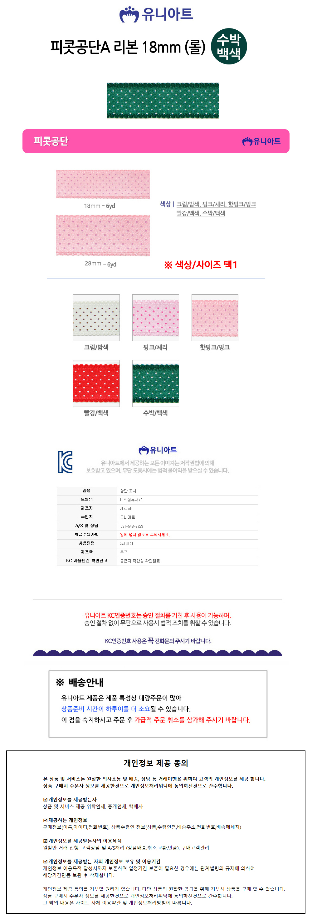 [상품명 : YTU-16884 (리본) 피콧공단A 리본 18mm (수박백색) (롤)]