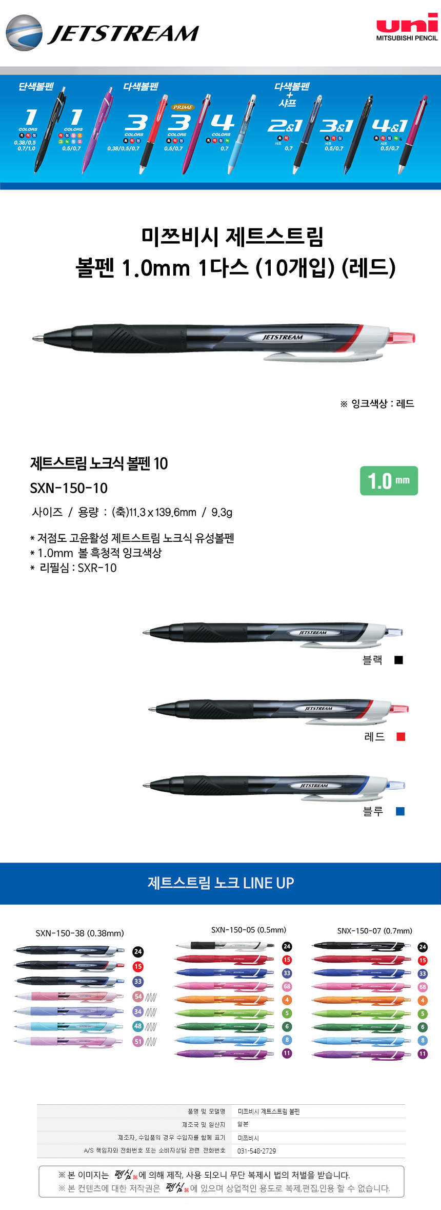 [상품명 : YTU-16775 미쯔비시 제트스트림 볼펜 1.0mm 1다스 10개 레드]