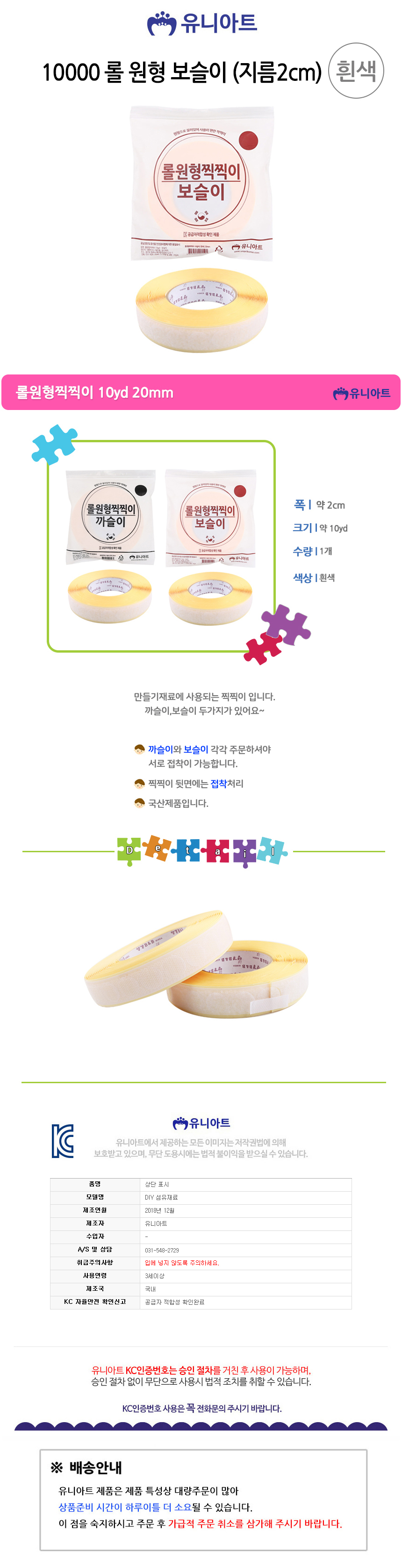 [상품명 : YTU-16675 (찍찍이) 롤 원형 보슬이 (지름2cm) (흰색)]