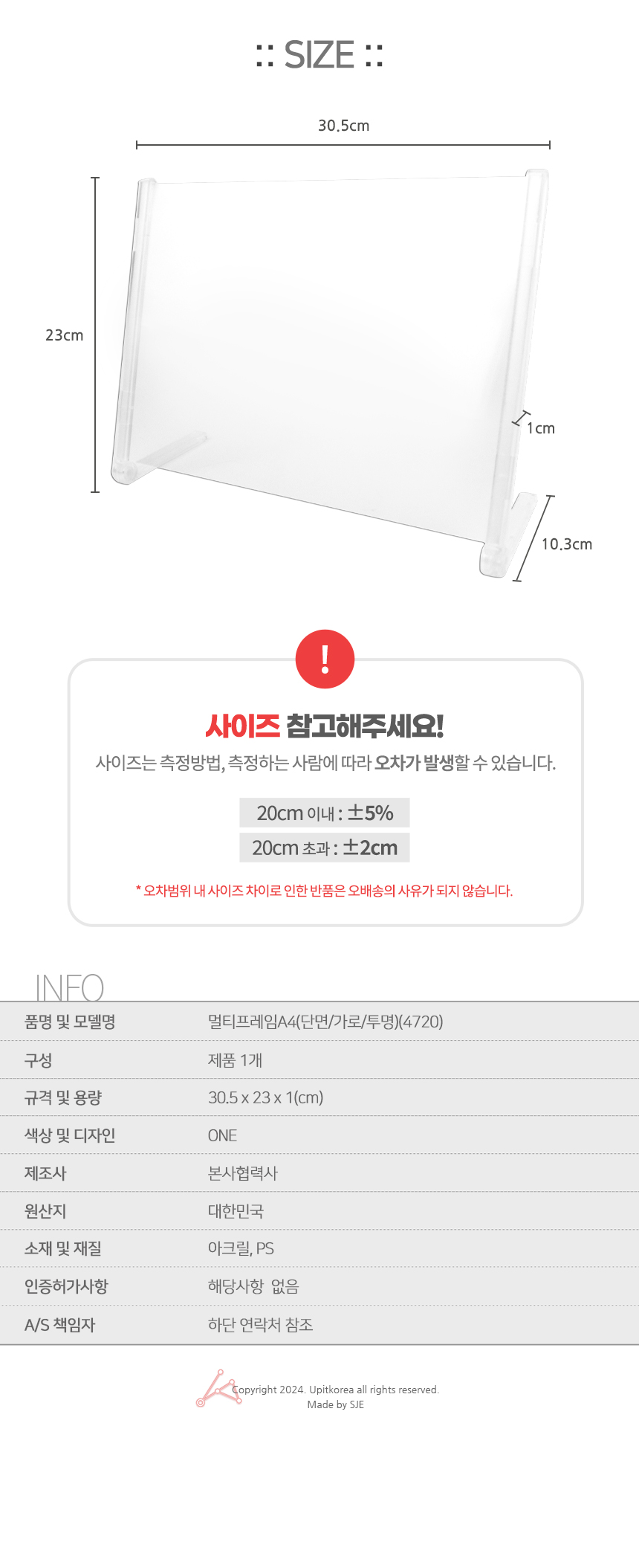 [상품명 : fri_79DMARTS00004720 투명 가로 단면 가로 멀티프레임A4 4720]