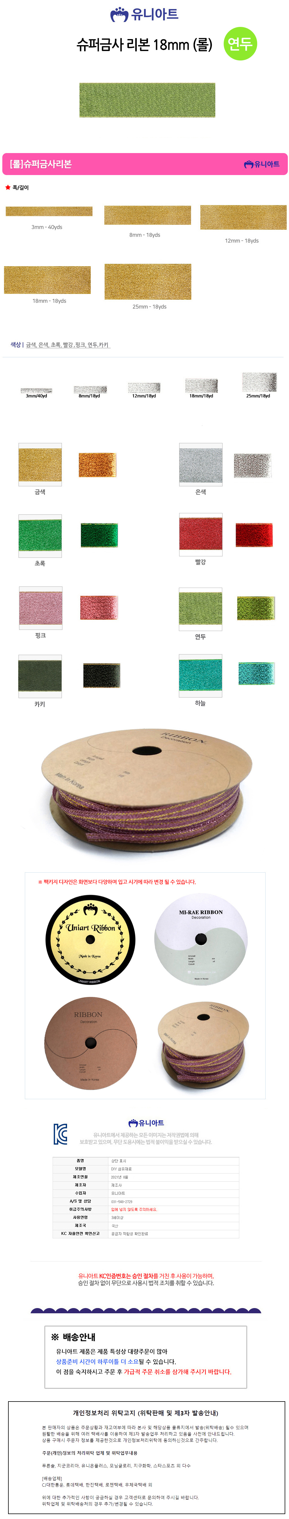 [상품명 : YTU-17144 (리본) 슈퍼금사 롤 (폭 18mm) (연두)]