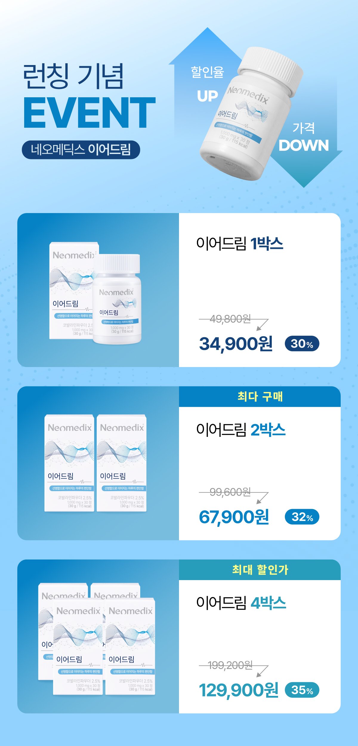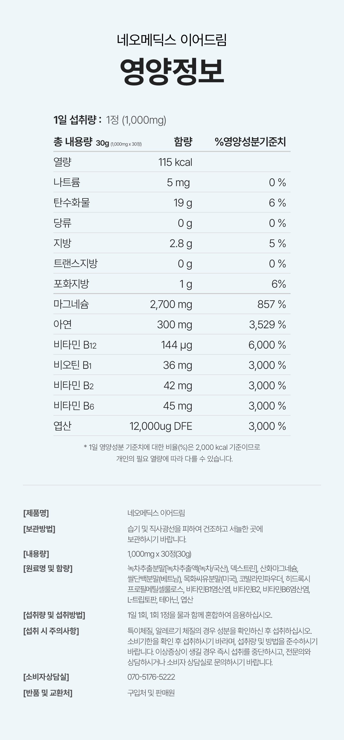 공식판매처 네오메딕스 이어드림 코발라민 가바 아연 마그네슘 비타민B12 4박스 4000mg
