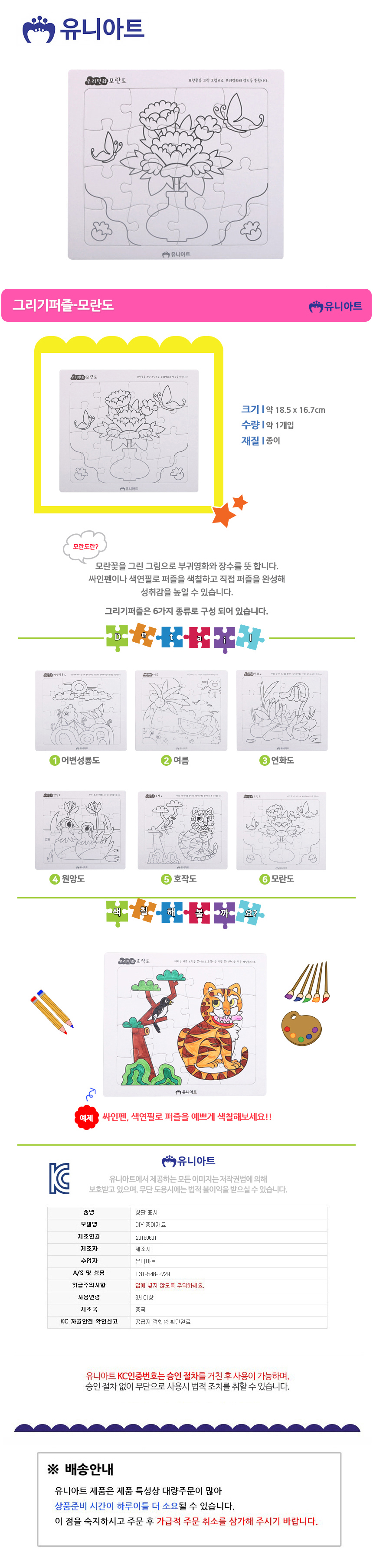 YTU-17105 (DIY) 그리기퍼즐 (모란도) 공작 만들기 공예 미술놀이 유아미술