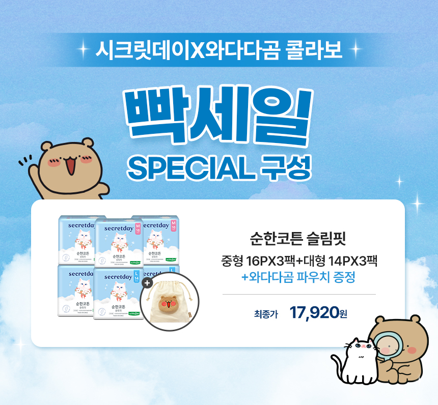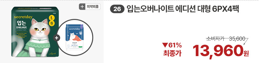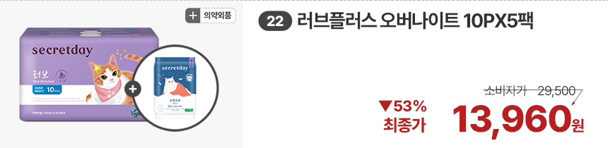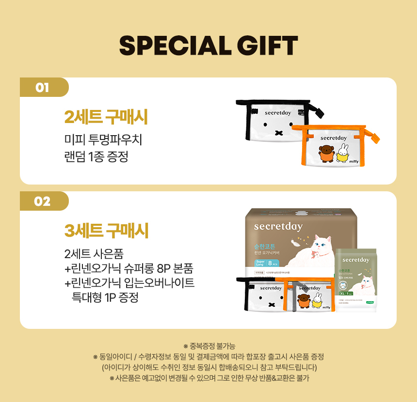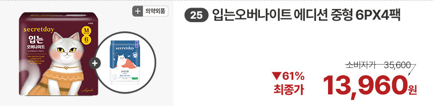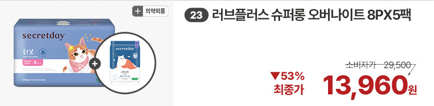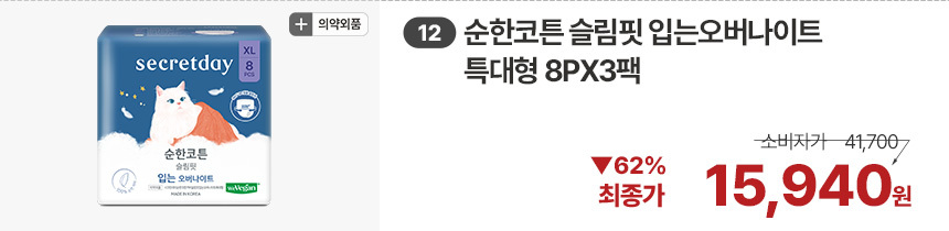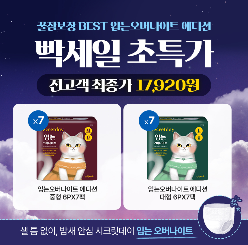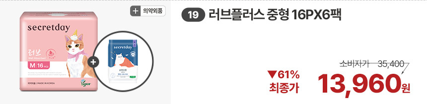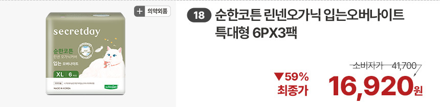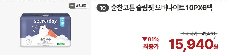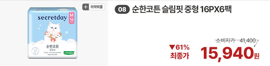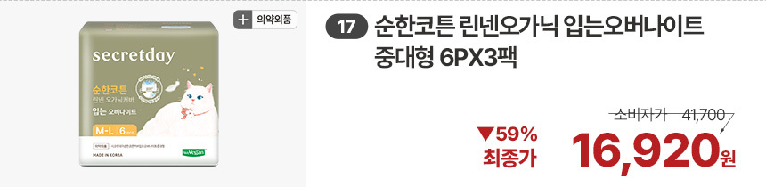 (한정/입오버 장당 400원대) 시크릿데이 생리대 블랙 중형 16PX7+1팩더 외 순한코튼/유기농
