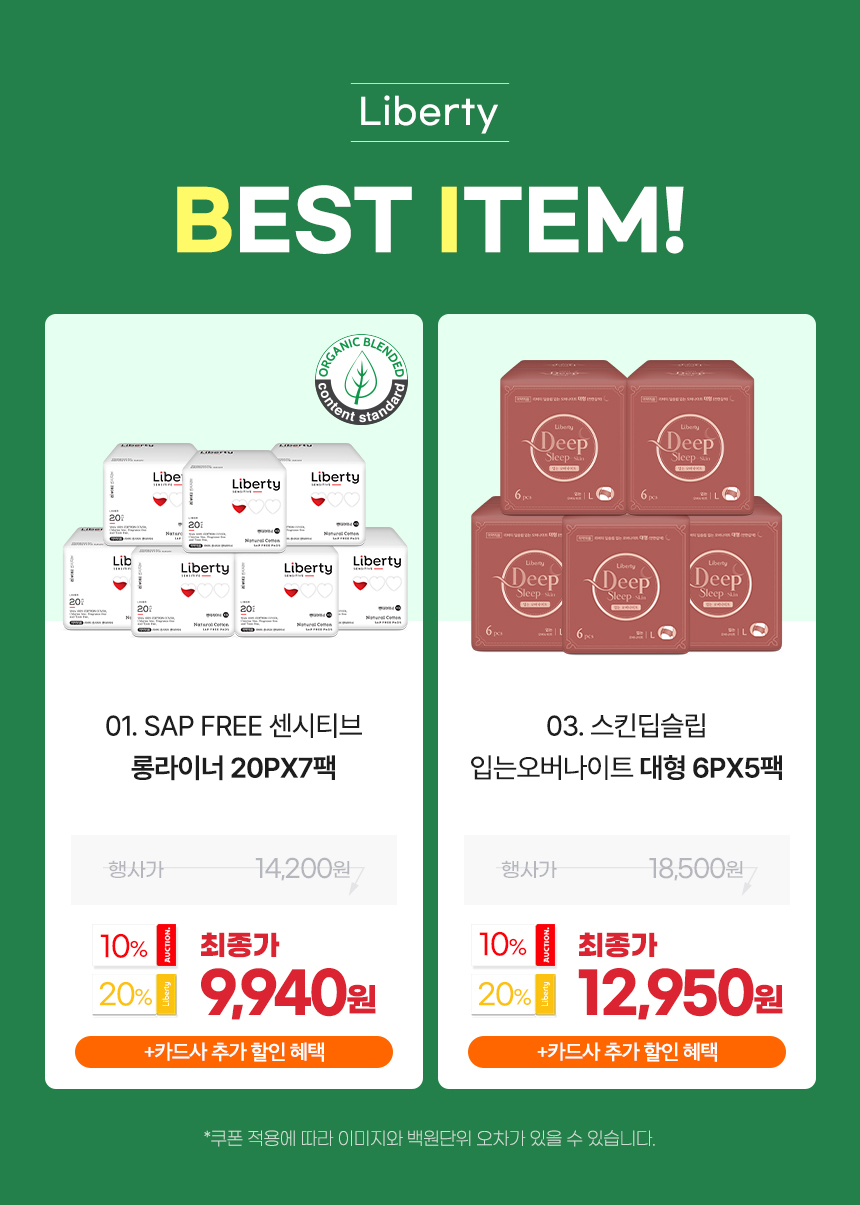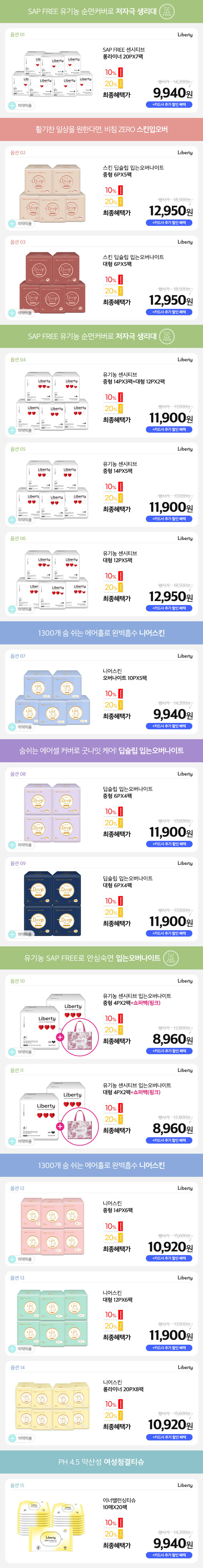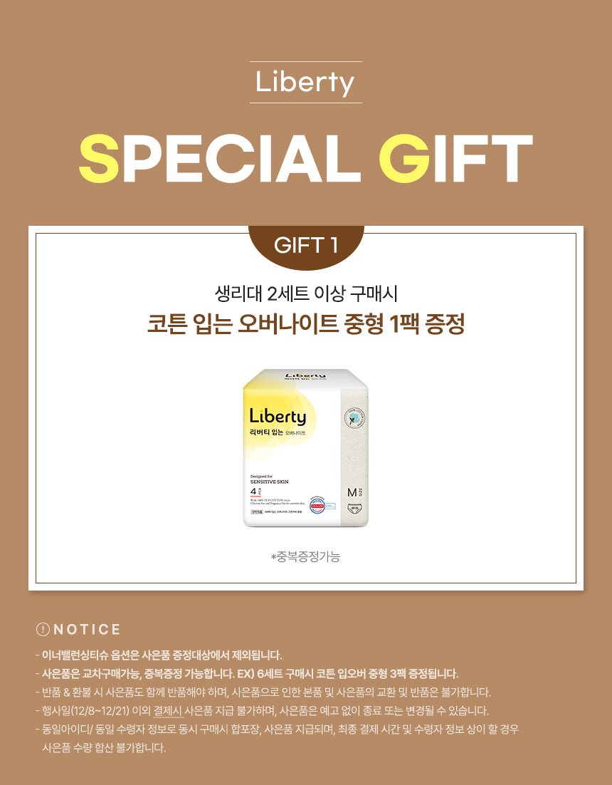 (입오버 장당 400원대)생리대 리버티 입는오버나이트 유기농 팬티라이너/복수구매 사은품증정