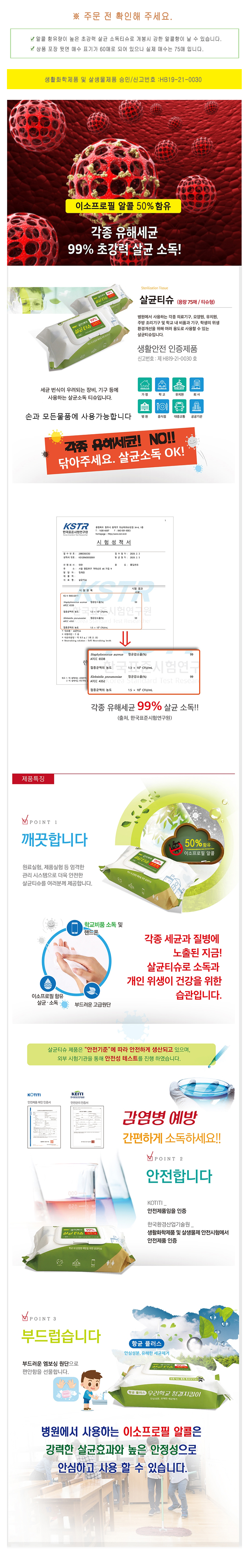 균이제로 살균소독티슈 75매X24 감염병예방 99.9%항균