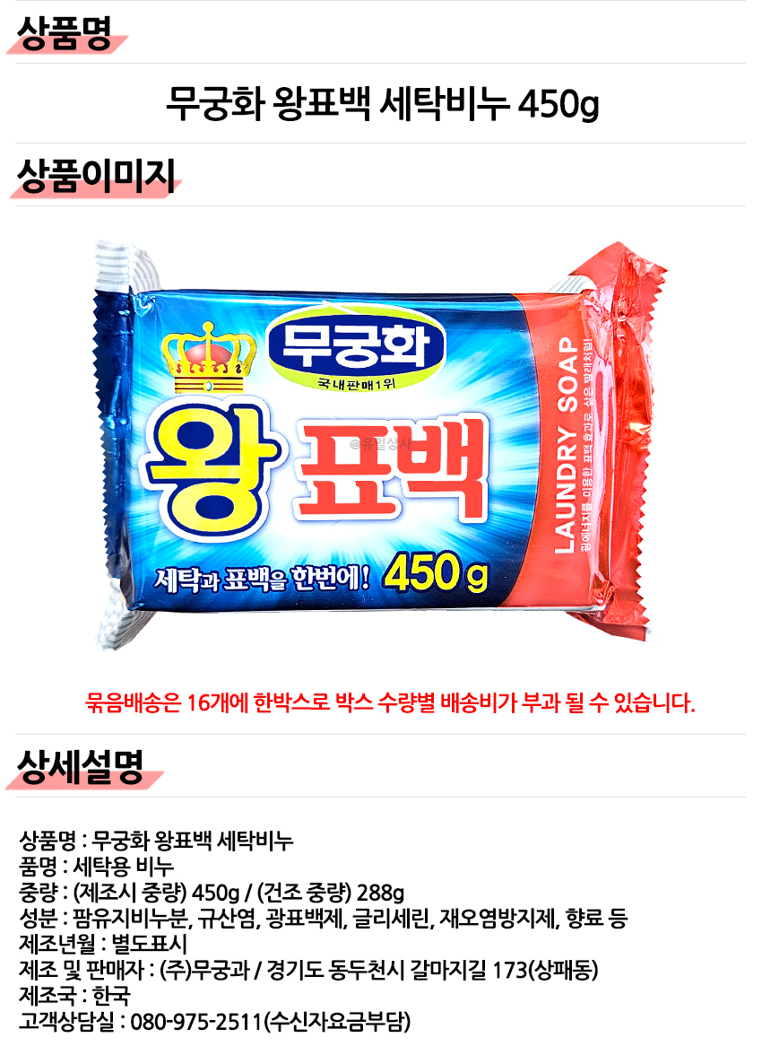무궁화 왕표백 빨래비누 450g x 1개 / 세탁 찌든때 손세탁 대용량