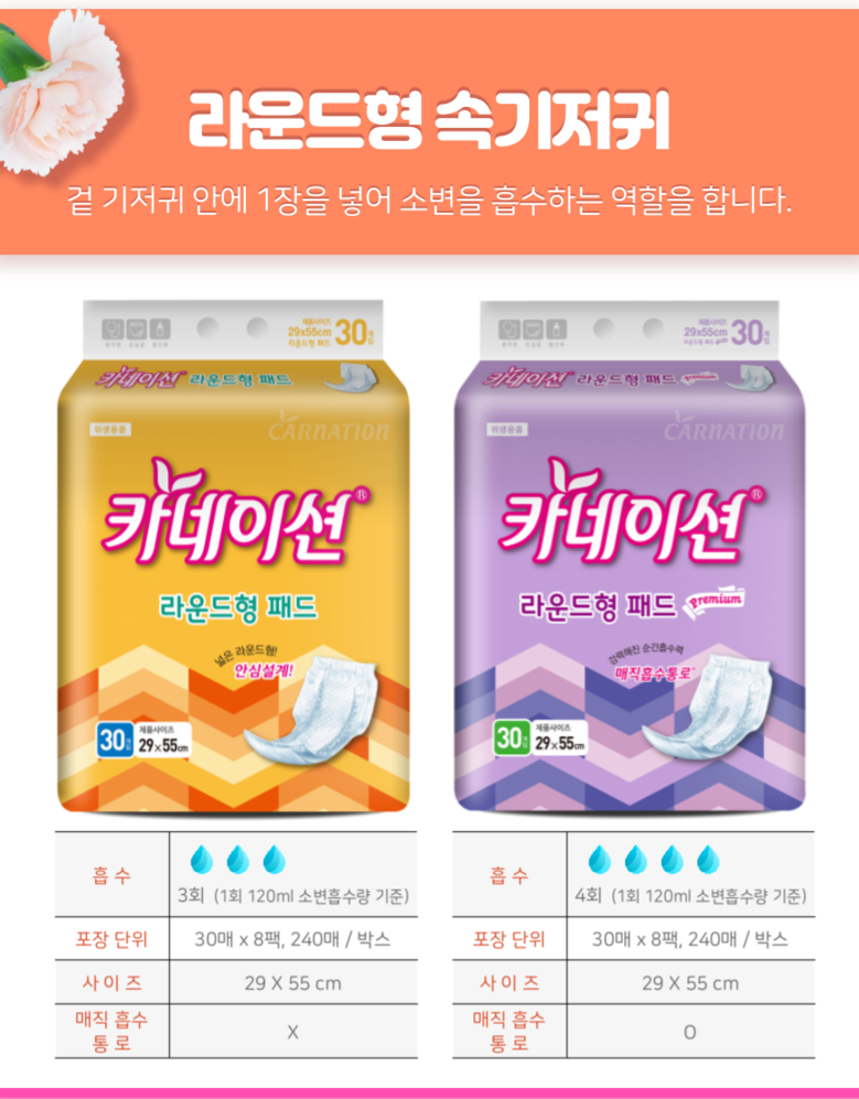 카네이션 라운드 고급 30매 4팩