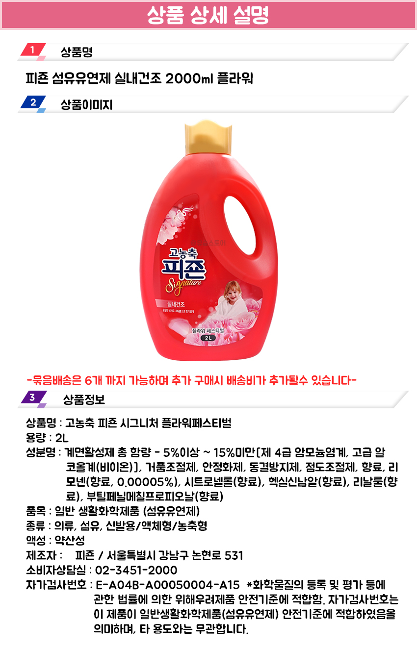 피죤 실내건조 섬유유연제 플라워 2000ml 1개