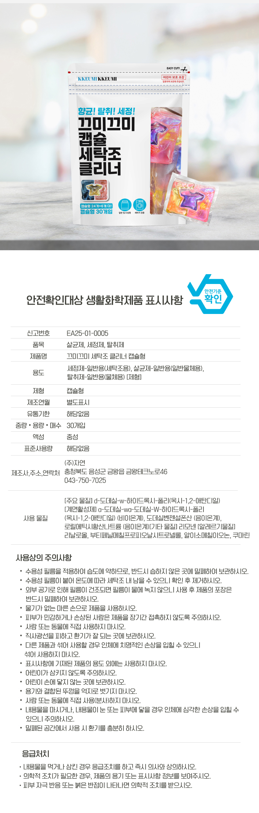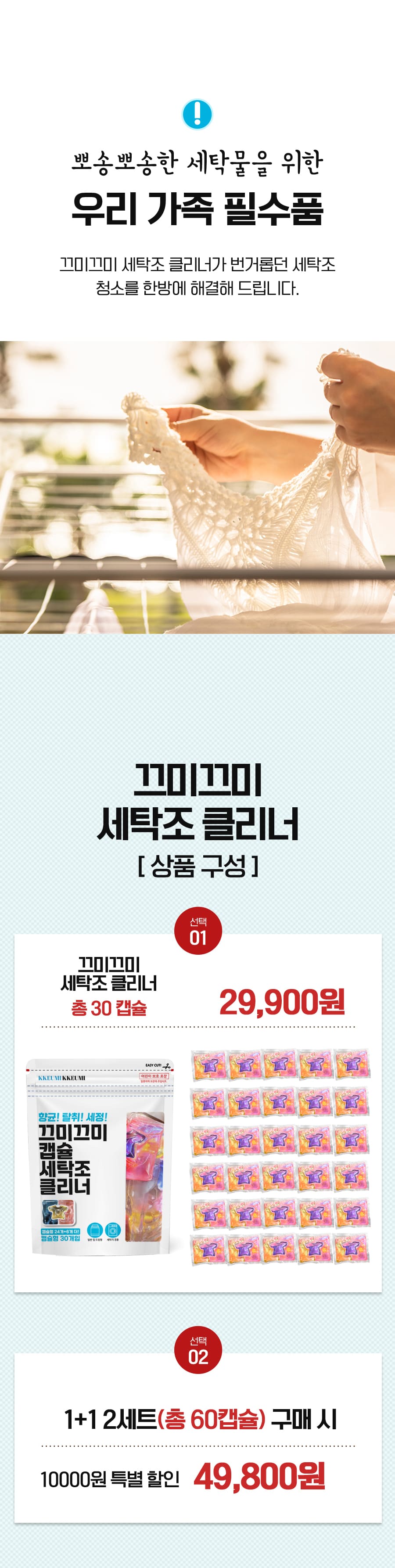 끄미끄미 세탁조 클리너 1세트(30캡슐) 버블큐브 고농축 캡슐 세탁조청소 세제 크리너