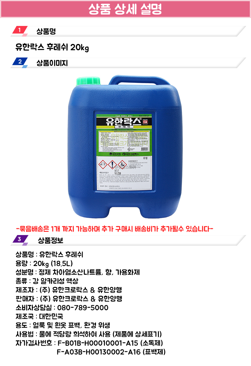 유한락스 후레쉬 20kg 1개