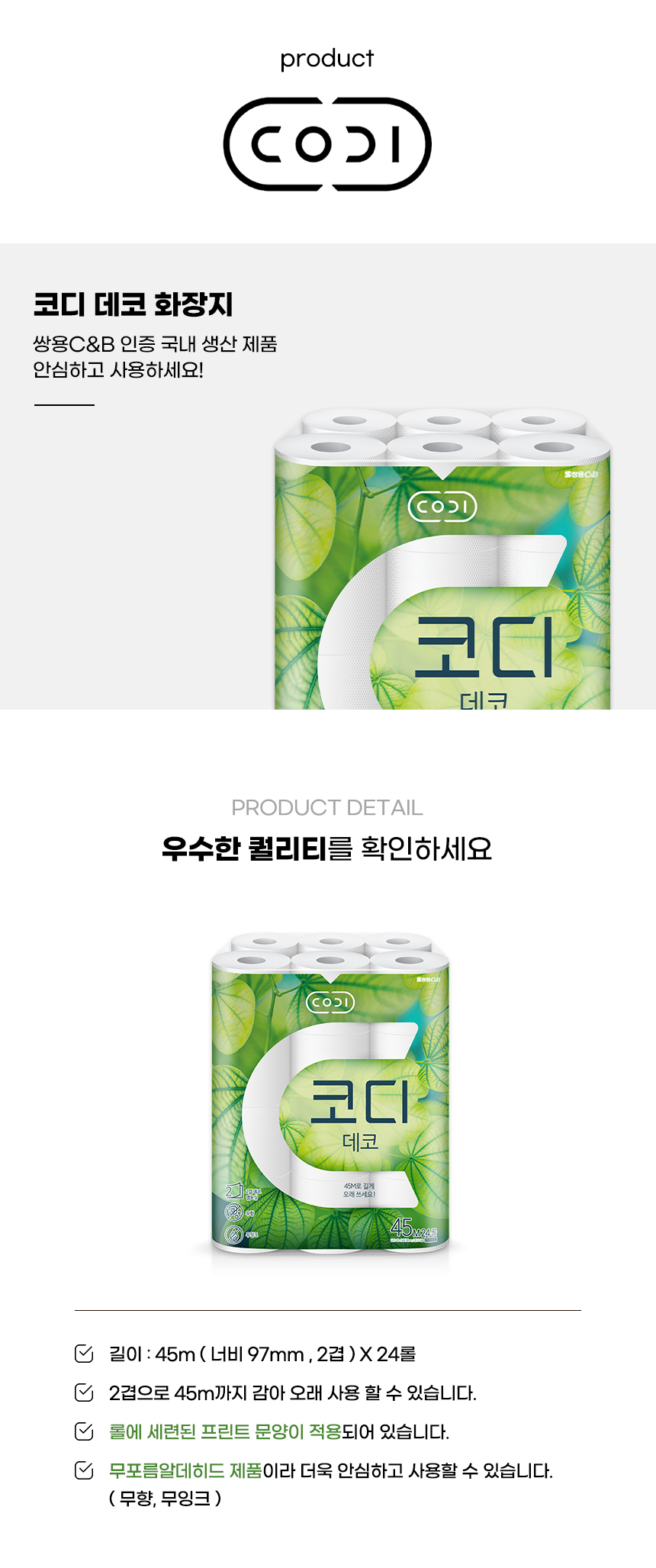 코디 데코 45m 24롤 2개 두루마리/화장지