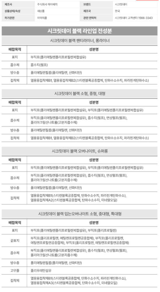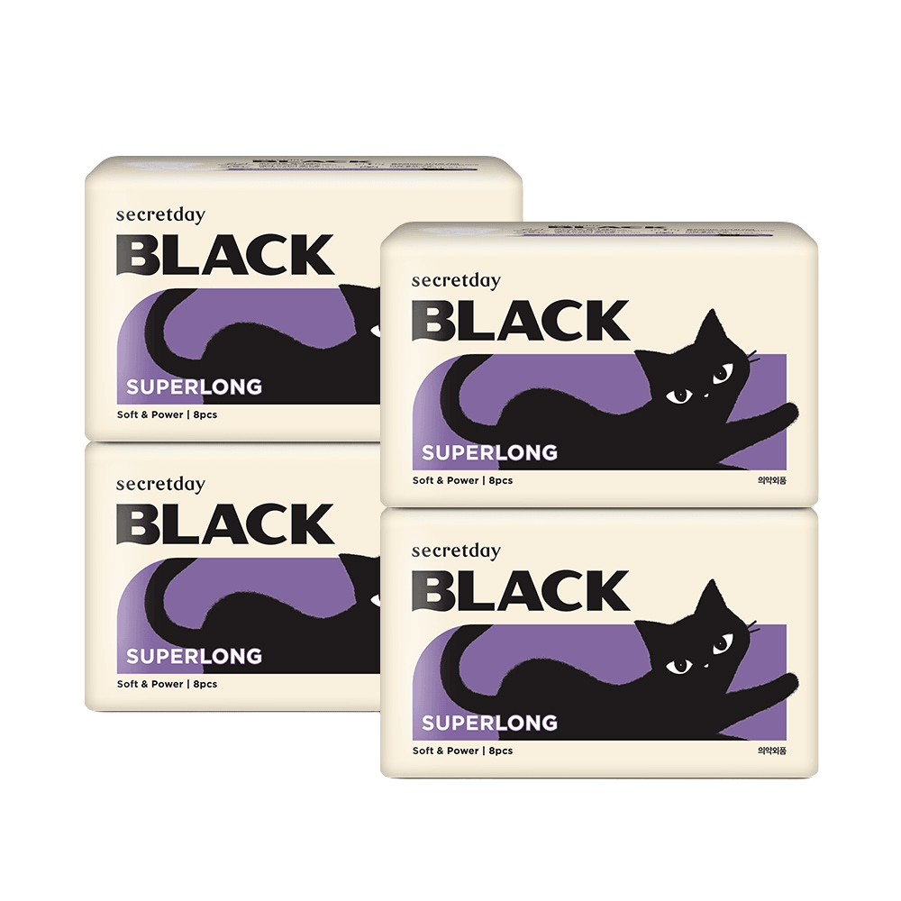 시크릿데이 생리대 블랙 슈퍼롱 오버나이트 8개입 4개 강력한 흡수력