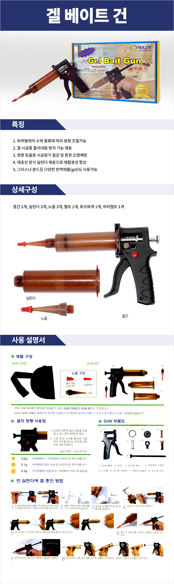 겔베이트건세트 1개.전문가용 바퀴퇴치 제거 퇴치기