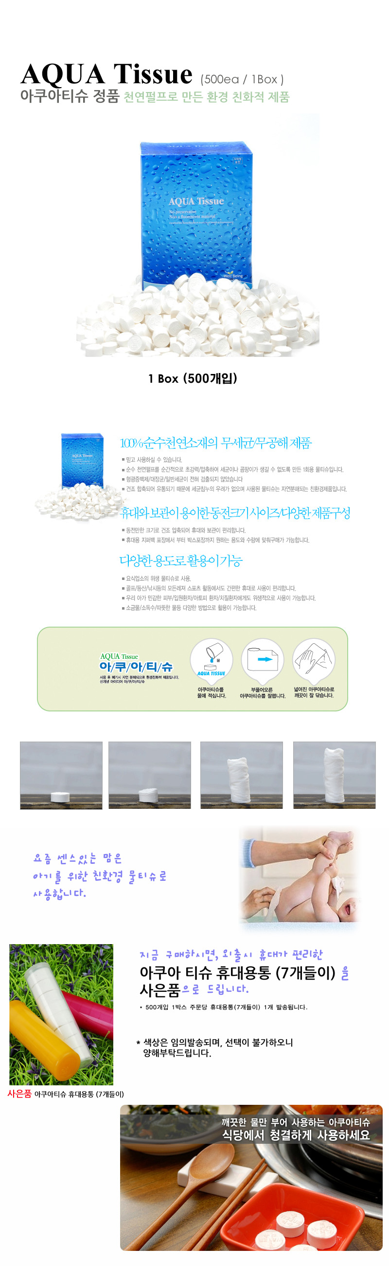 아쿠아 티슈 500 +7개입 휴대용통/압축/건 티슈
