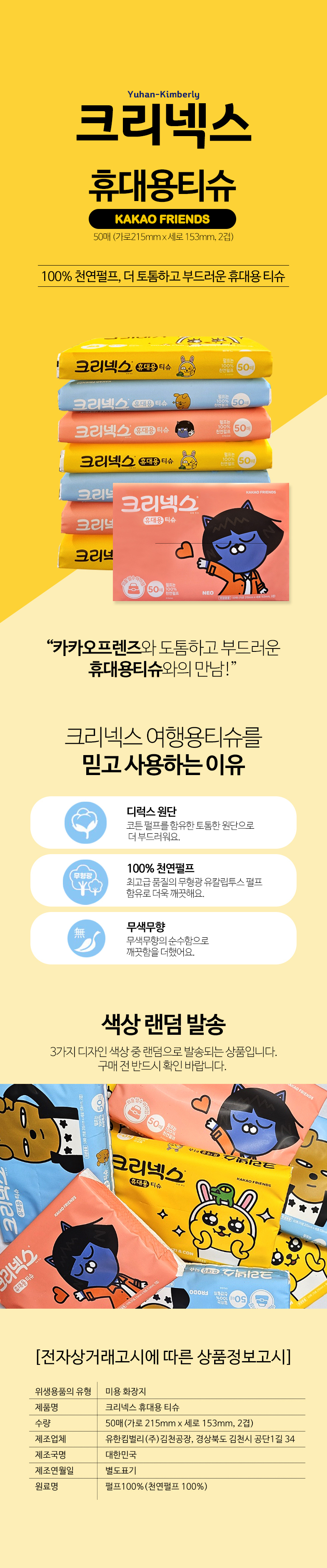 크리넥스 카카오프렌즈 휴대용티슈 50매 100팩 (랜덤배송)